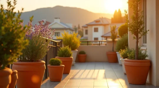 Sur un balcon exposé plein sud, le matériau du pot influence directement la survie de vos plantes. La terre cuite, poreuse, laisse respirer les racines mais sèche rapidement. Le plastique retient mieux l’humidité mais peut provoquer une surchauffe racinaire par temps caniculaire. Un pot clair de couleur sera toujours préférable à un pot noir qui accumule la chaleur.